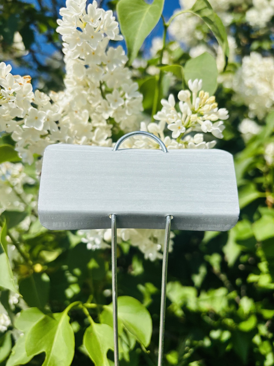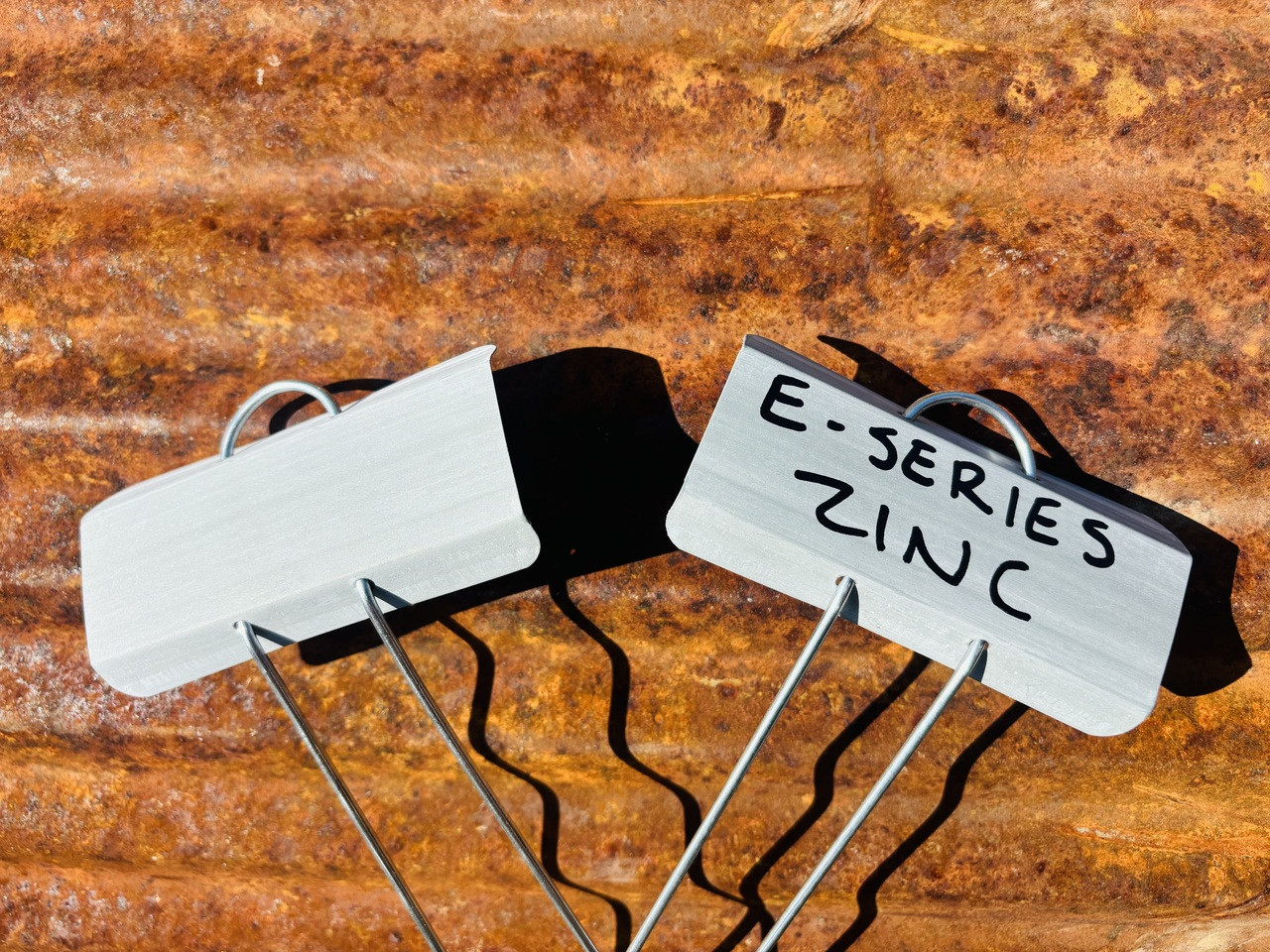 One of our most popular garden marker styles now available with zinc plates! Get the same clean look and size of our standard E series markers but with the elegance and refinement of zinc marker plates.